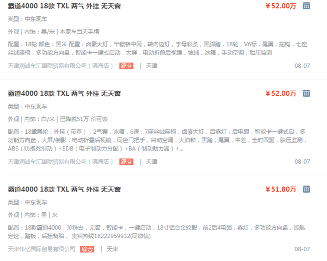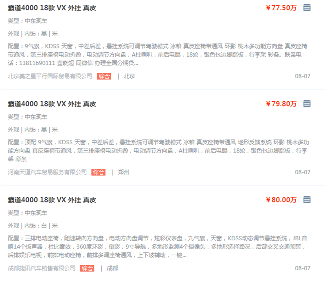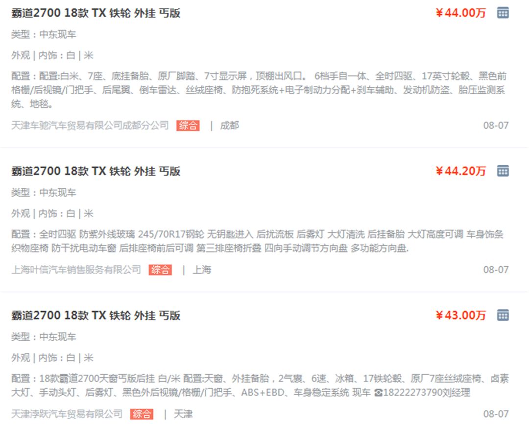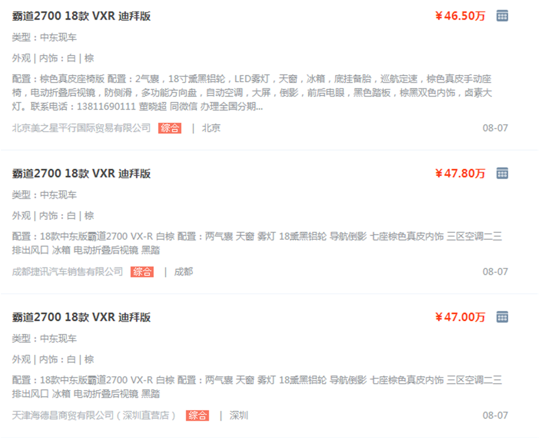 所有一手任意配置的中规和中东版霸道汽油2.7长轴版