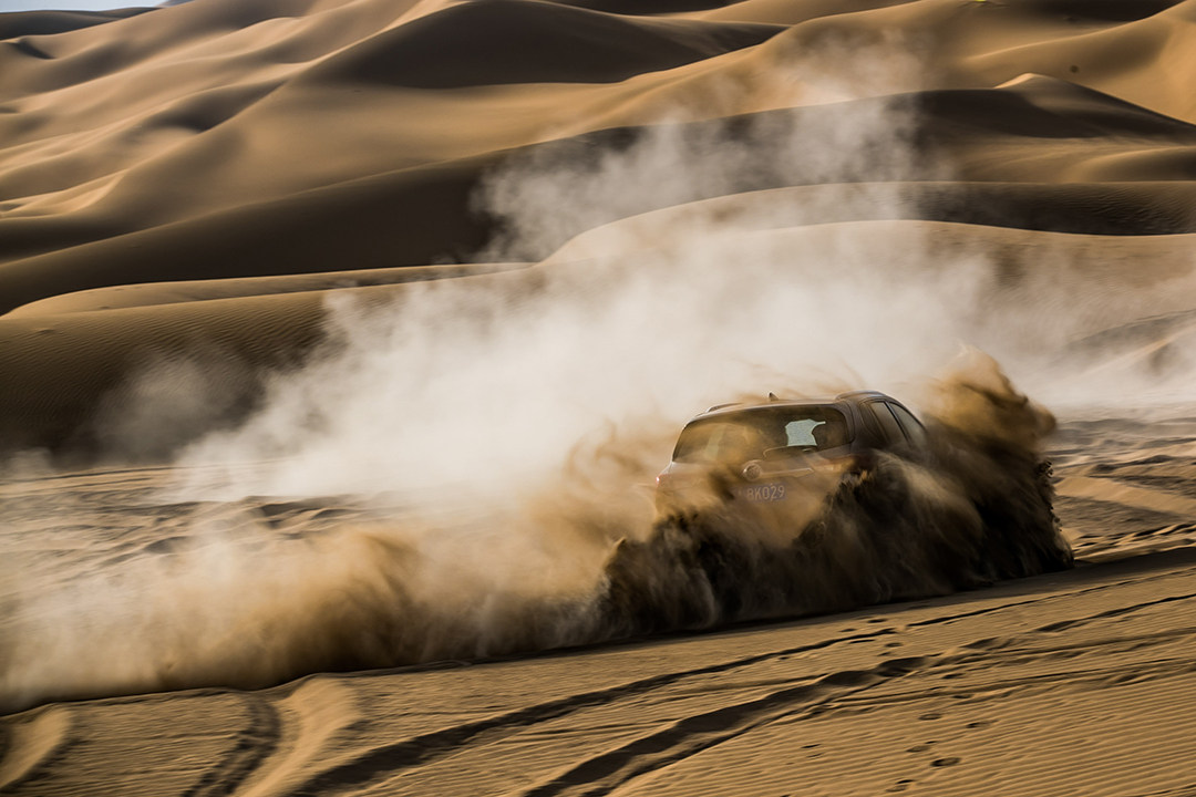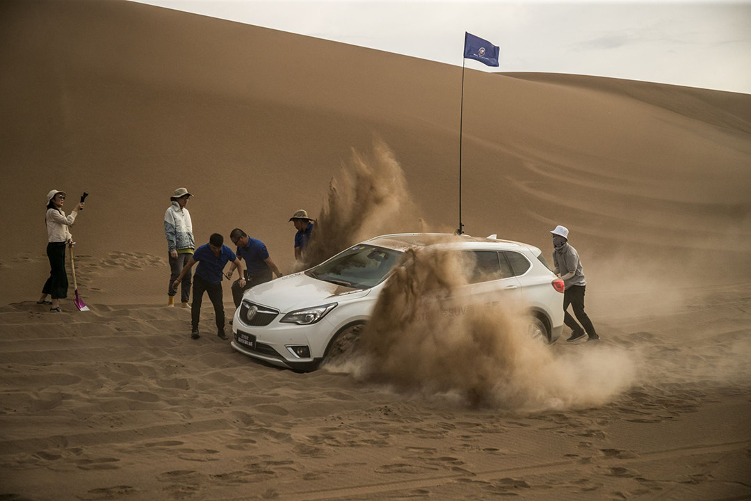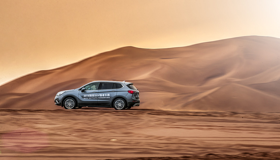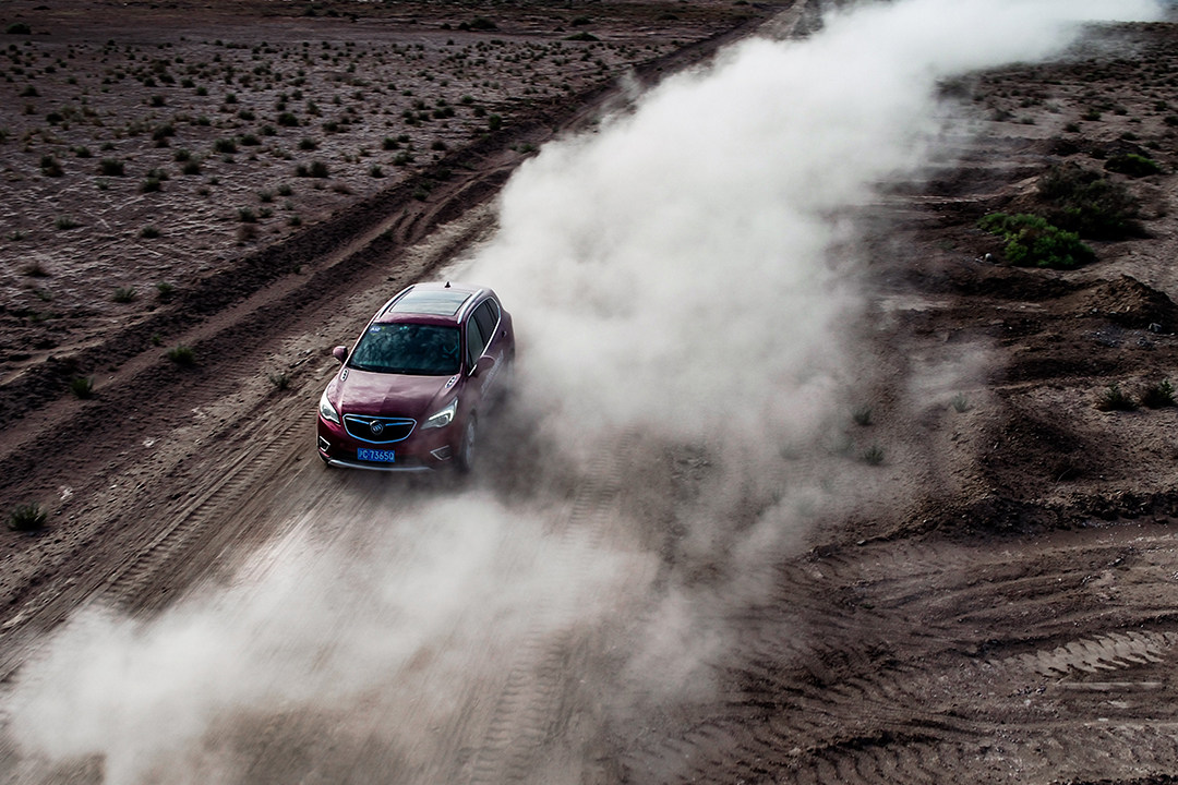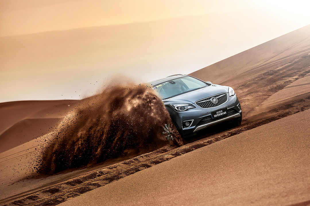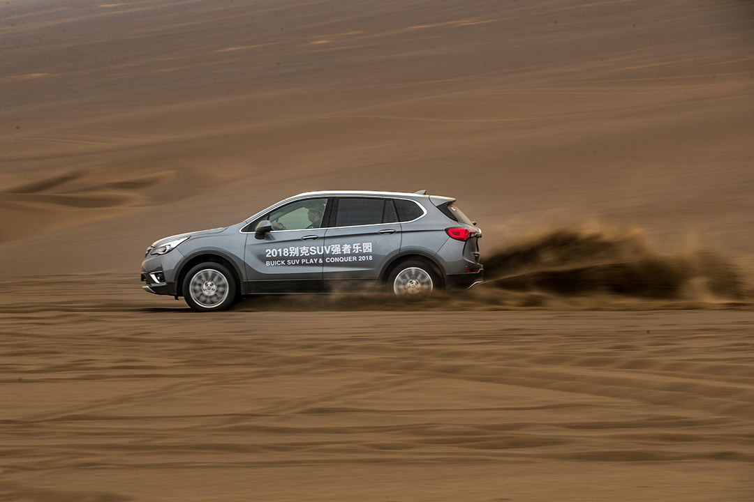 其实很多人对沙漠驾驶有一定误区,觉得一定要大排量自然吸气,或是非承载悬架的硬派越野车才能胜任。其实只要将一些细节工作做好,只要带四驱系统的城市SUV,也能享受沙漠的乐趣。首先将轮胎气压放至1.2-1.5bar,而昂科威所匹配的固特异御乘轮胎采用高密度刀槽设计,在低摩擦系数路面也能提供较强的抓地力。昂科威的智能全路况四驱系统会根据路况实时分配前后轮及左右后轮动力;ESC/TCS系统也会与四驱系统完美配合,对车轮实时选择性制动,大大提升车辆在砂石等低附着路面上的行驶稳定性和制动性。然后切记:沙漠路况,轻刹车,轻油门,防止轮胎刨坑陷车。然后,Enjoy!