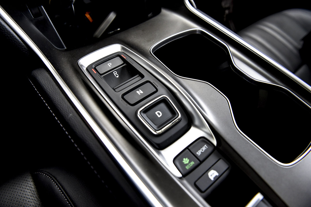 内饰是混动版雅阁与普通版最有差异化之处,进入车内以后首先最明显的改变就是由汽油版的机械换挡杆换成了冠道2.0T车型上的电子换挡按钮。其次,换挡按钮下方的SPORT和EV还有本田一向的ECON按钮。