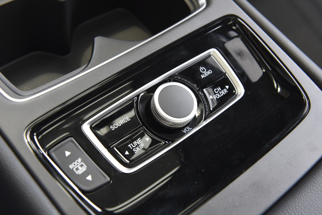 后排中央扶手放倒以后能够在上面通过旋钮控制全景天窗的遮阳帘,以及音源音量控制等,不过没有显示屏幕,只能侧头看前方的中央显示屏,个人感觉调节音量的作用胜过其他所有的作用。