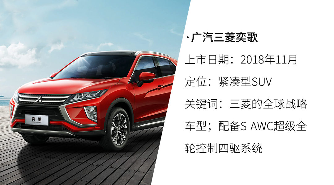 乍一看也许很多人以为奕歌与奕跑是同品牌的车型,但实际不然,奕歌是广汽三菱旗下一款全新的SUV,也被很多人认为是三菱SUV重振旗鼓的一款重要产品,据悉奕歌将会在十月下旬左右正式下线,而在十一月份正式上市销售,而我认为它很有可能会蹭今年广州车展的热度进行首发。