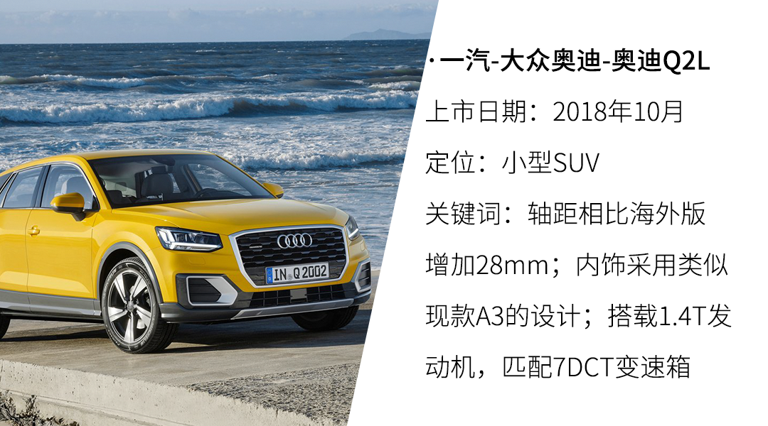 豪华品牌小型SUV尚属于竞争蓝海,但奥迪已经嗅到这块市场的巨大潜力,率先引入国产已经在海外上市的奥迪Q2并且进行加长,奥迪Q2L将会在十月份在国内正式上市。