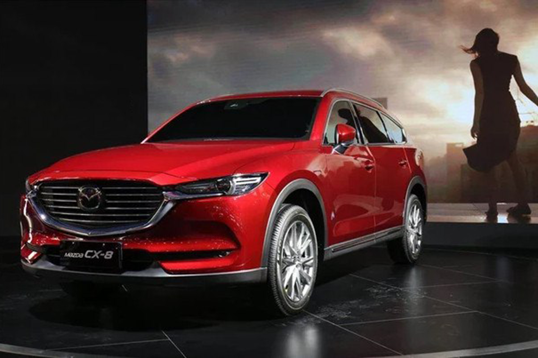 即将在国内上市的马自达CX-8定位是一款中大型7座SUV,外观采用马自达“魂动”设计理念,车身尺寸长宽高分别为4955/1842/1733mm,轴距为2930mm,全系搭载2.5L发动机。