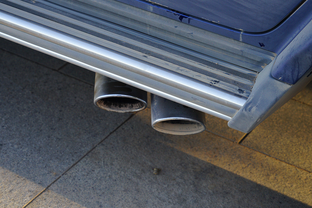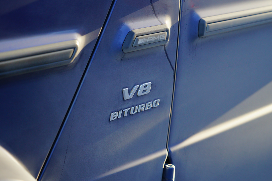 车身侧面,翼子板处只有G63才带有“BITURBO”徽标,同时,排气管也从车侧裙底露出,隐约透露出一份不怒自威。
