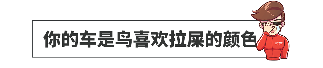 白色、红色、黑色、蓝色的车通常是鸟屎喜欢光顾的颜色。因为白色是和鸟粪相近的颜色,鸟会以为白色车就是一大堆鸟屎,很自然认为是“厕所”而在上面拉屎。而红色是因为对鸟类具有刺激性,让鸟以为汽车是天敌出现,这时鸟类会通过排泄粪便的方法来自卫。黑色和蓝色则是因为和河水或海水的颜色相近,而鸟会在海上或河上一边飞行一边拉屎,所以这点就只能认倒霉了,教授也没有解决办法~~