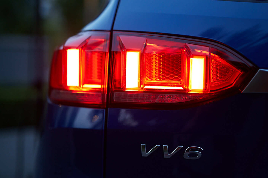 流水转向灯也是VV6的亮点,跑马灯式迎宾解锁功能,营造很强的仪式感,流水转向灯在解锁车门、打开双闪及车辆转向的过程中依次点亮,视觉效果更动感,更能起到警示作用,在SUV领域除雷克萨斯、奥迪高端品牌外,在国内属于领先技术;另外,高位制动灯和前后雾灯均采用LED光源,前雾灯带转向自动照明功能。