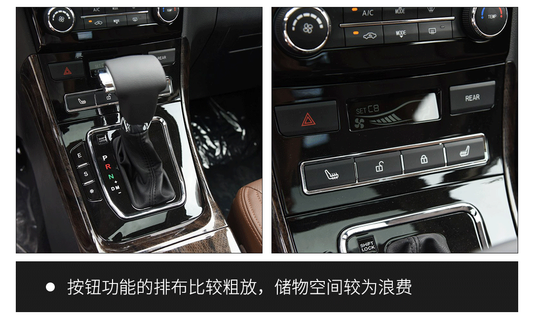 缺点还是有的,比如中控和档把周围的按钮功能略显凌乱,而且储物空间比较浪费,有待优化