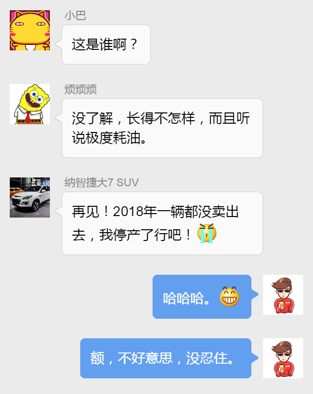 纳智捷大7 SUV停产,2018年一辆都没卖出,哈哈。