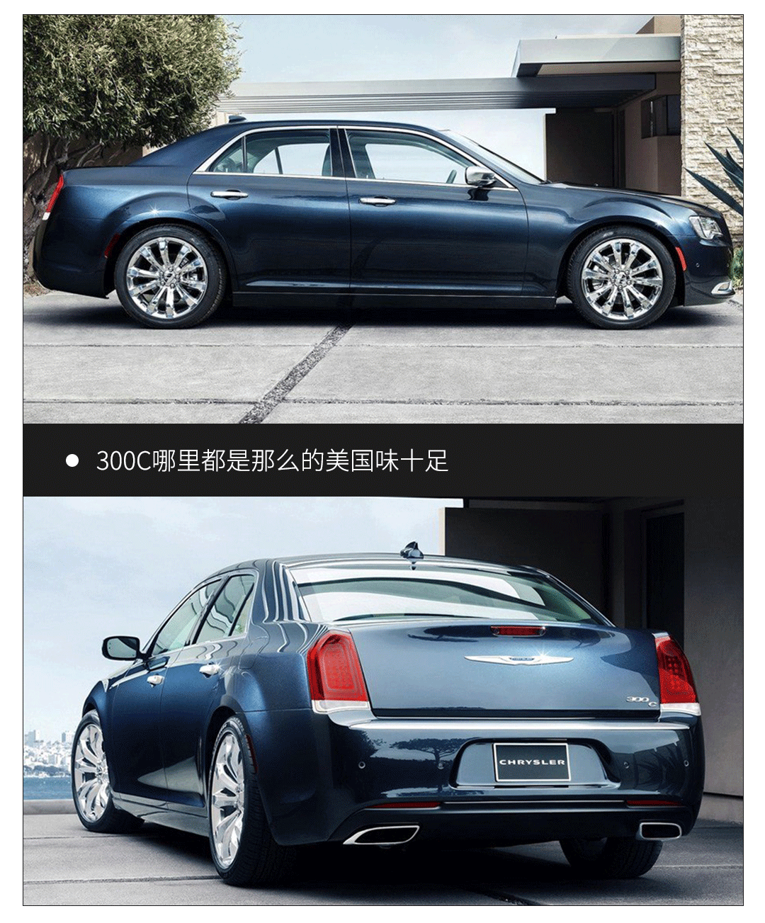 克莱斯勒300C也是历史悠久的美系豪华轿车,但与大陆和CT6相反,300C貌似并不想为这个新时代改变太多,不过这也正是一部分有老派美国车情怀的消费者所喜爱的。从头到尾的外观设计都是像六十七年代的美国轿车那样棱角分明,电镀大尺寸轮毂、大面积镀铬中网都显得美国味十足,还有美规车独有的黄色边灯也被中规版本一个不落地保留了下来,让人远远一看就能认出这是一辆美国车。
