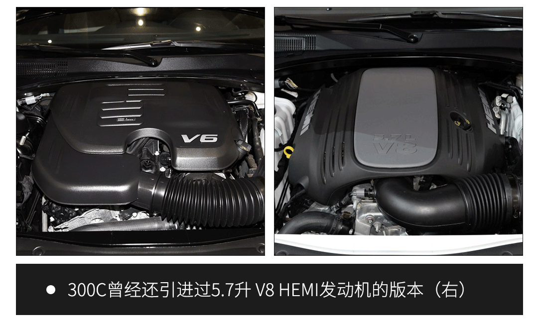 内饰也通过使用白黑两种颜色的冲撞搭配,来刻意营造一种复古的氛围,特别是方向盘内圈的白色真皮,就是老式美国轿车惯用的设计,座椅坐垫和靠背上的白色真皮更让人有梦回60年代坐着美国大沙发的既视感。动力上300C也没有向时代和新科技妥协,依然采用一台3.0或3.6的大排量V6自然吸气发动机,当然,如果能够引进美规版的5.7 V8 HEMI发动机就更好了,毕竟八缸机才能和现在的小排量涡轮发动机叫板啊!不过中规的V6自吸发动机更省油也是真的。