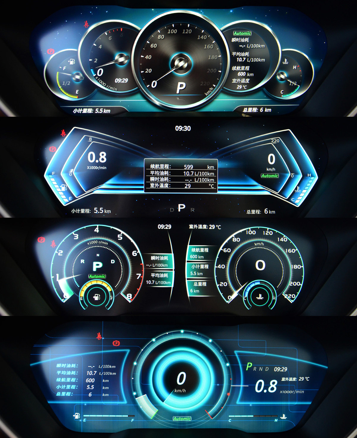 还有全液晶仪表盘,1.8T和2.0T的高配车型才有配备,有5种显示主题可供选择,既可以提升科技感还可以满足不同消费者的审美需求。