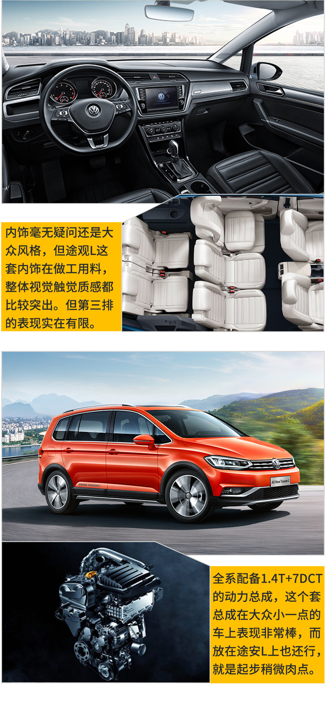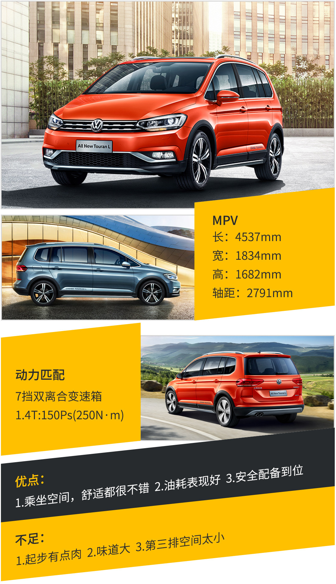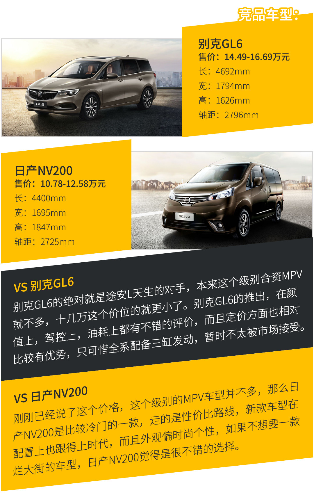 严格来说,途安L其实是几乎没竞争对手的。在MPV市场,途安L下有宋MAX和宝骏360,上有别克GL8和奥德赛。而途安L 这个级别这个价位,或许更多人会选择SUV车型,或许这也是途安L像SUV跨界的原因吧。