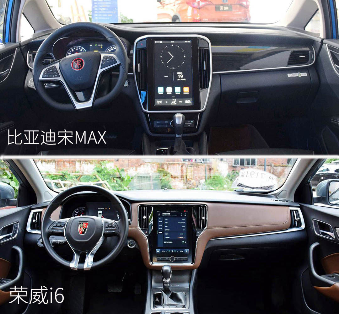 而在传统燃油车里面,屏幕相对没有那么大,但是风格类似,例如比亚迪宋MAX,荣威的I6。