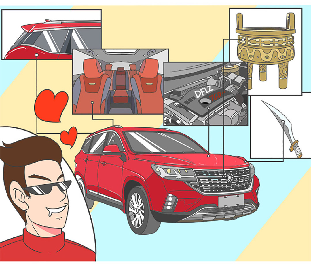 协调的车身比例,众多主流设计元素,悬浮式车顶,双色轮毂等,但最吸引教授的无疑是国之重器“四足圆鼎”的前格栅和剑羽状的日间行车灯,中国风浓郁,原创度极高。