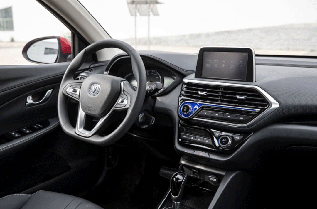 它采用了平底的方向盘造型,提升运动气质但是方向盘的设计样式有点日产西玛的影子。中控采用阶梯式中控面板设计,层次感突出。而它还采用7英寸悬浮式中控屏设计,支撑百度CarLife手机互联、in Call智能车载互联、倒车影像等功能。