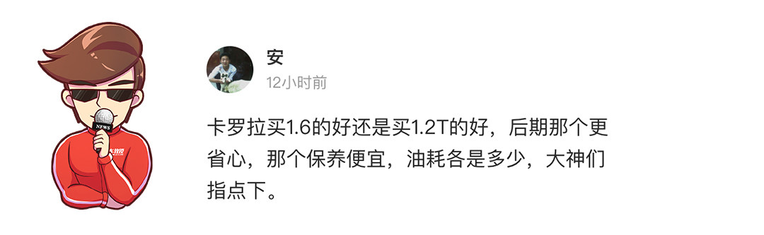 两款发动机质量都是经过市场的千锤百炼,可靠性都无需担心。自吸车型厂家推荐使用矿物油,而涡轮车型推荐半合成或全合成机油,所以后期保养成本上涡轮车型要比自吸车型更贵。1.2T手动/自动车型车主后期实测百公里油耗分别是6.7和7.3。而1.6L手动/自动分别是7.0L/7.4L,最后回归两款发动机的姓氏你特性,如果你更喜欢润物细无声的驾乘体验选1.6L自吸发动机,如果你想在平淡的驾驶中希望体验到一丝“推背感”选1.2T涡轮增压车型。