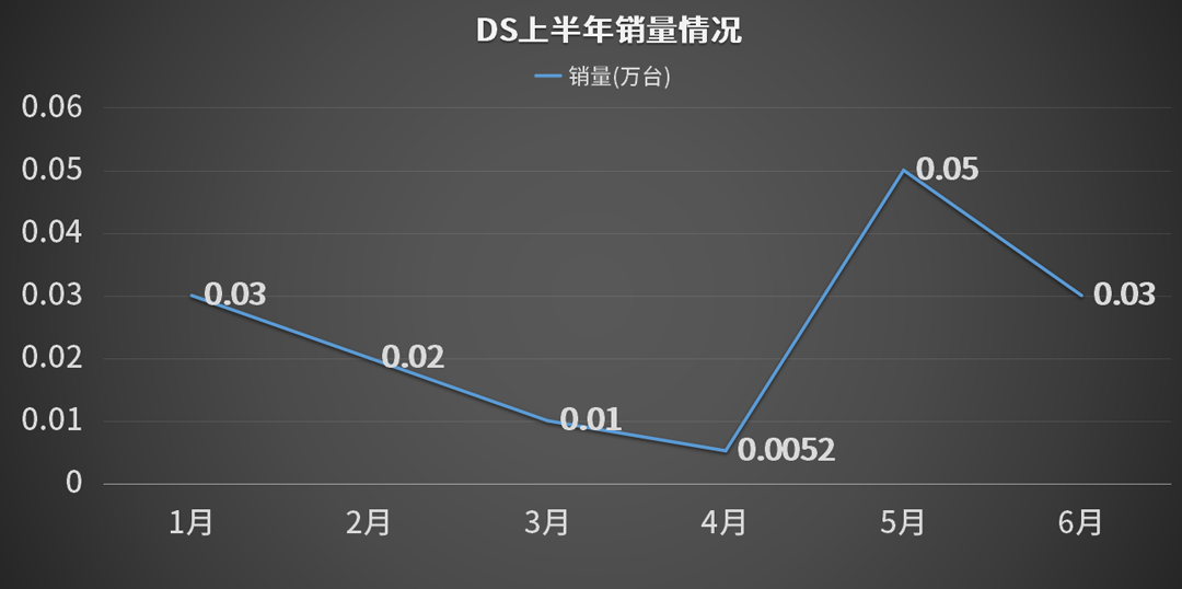 在几个法系车品牌中,DS的跌幅是最为惊人的。6月份的销量环比上月跌了39.59%,同比上一年则跌了35.39%。整个上半年仅仅卖出了1500台左右,同比上一年跌了51.10%。