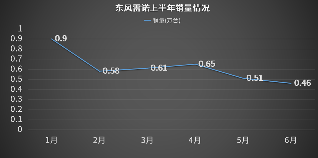 查看科雷嘉上半年的销量曲线,可以看到基本处于一个下滑的状态,到了6月的时候仅卖出1300多台而已。科雷嘉与逍客属于同平台产物,但在实际调校上,科雷嘉会更有扎实感,可惜雷诺的品牌知名度不如日产。