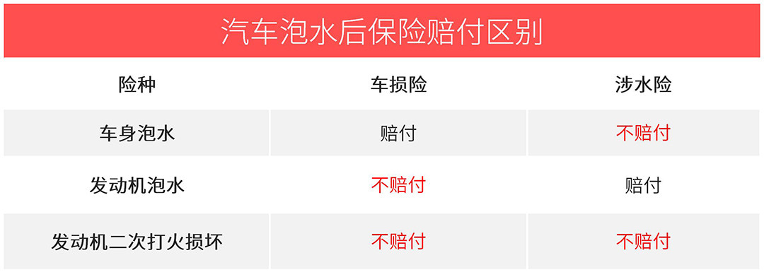 由于车损险是不对遭遇泡水的发动机损坏进行赔付的,而涉水险就是这点的补充,单独对水淹发动机造成的损失造成赔付。不过注意的是,和车损险一样,如果在泡水过程中强行启动发动机导致进水损坏的,保险公司会定性为人为操作失误,一样也不会针对发动机损失进行赔付。另外,在购买涉水险和车损险的时候,通常条款内都会为车损险和涉水险分别设置5%-20%的免赔率。因此如果要进行全额赔付,也需要购买不计免赔的部分。