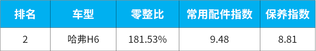 保养负担指数:车主每百公里养护所需支付的人工工时费和更换配件的费用