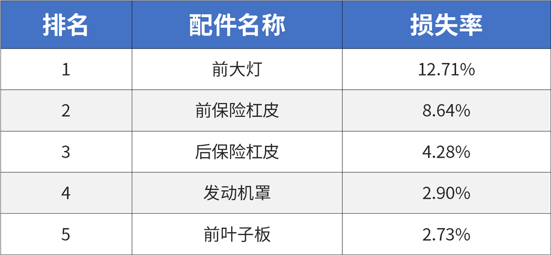 配件损失率前五的配件