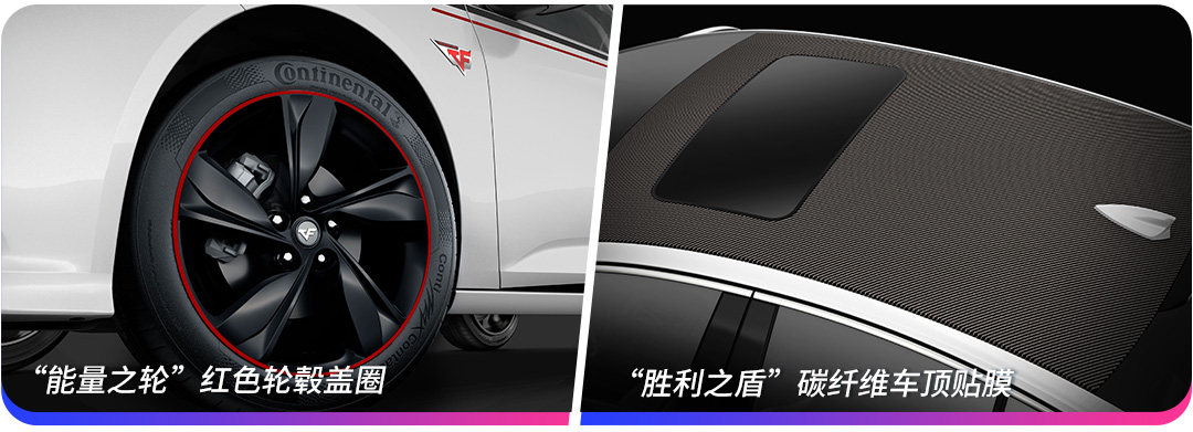 君威GS穿越火线联名限量版车型采用了与游戏中相同的车型外观,让玩家倍感亲切,并提供黑、白两种车身颜色。除了承袭君威GS的高颜值和运动范之外,限量版车型还融入了《穿越火线》独具特色的游戏元素,除了个性的游戏涂装和拉花,车轮还加装了“能量之轮”红色轮毂盖圈和“超能锋芒”发光轮毂盖,整体效果更加酷炫和个性。