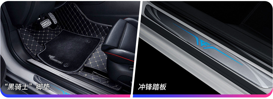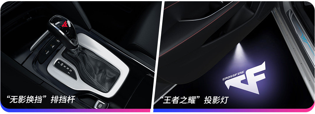 内饰方面也下足了功夫,与游戏元素全套配合,随处可见的游戏专属标识,红色的“CF”LOGO异常醒目,专属定制的“王者之耀”投影灯可以将游戏LOGO投影在车门下方,十分有游戏氛围,按下一键启动的按钮,就仿佛能穿越回危机四伏的枪战现场!