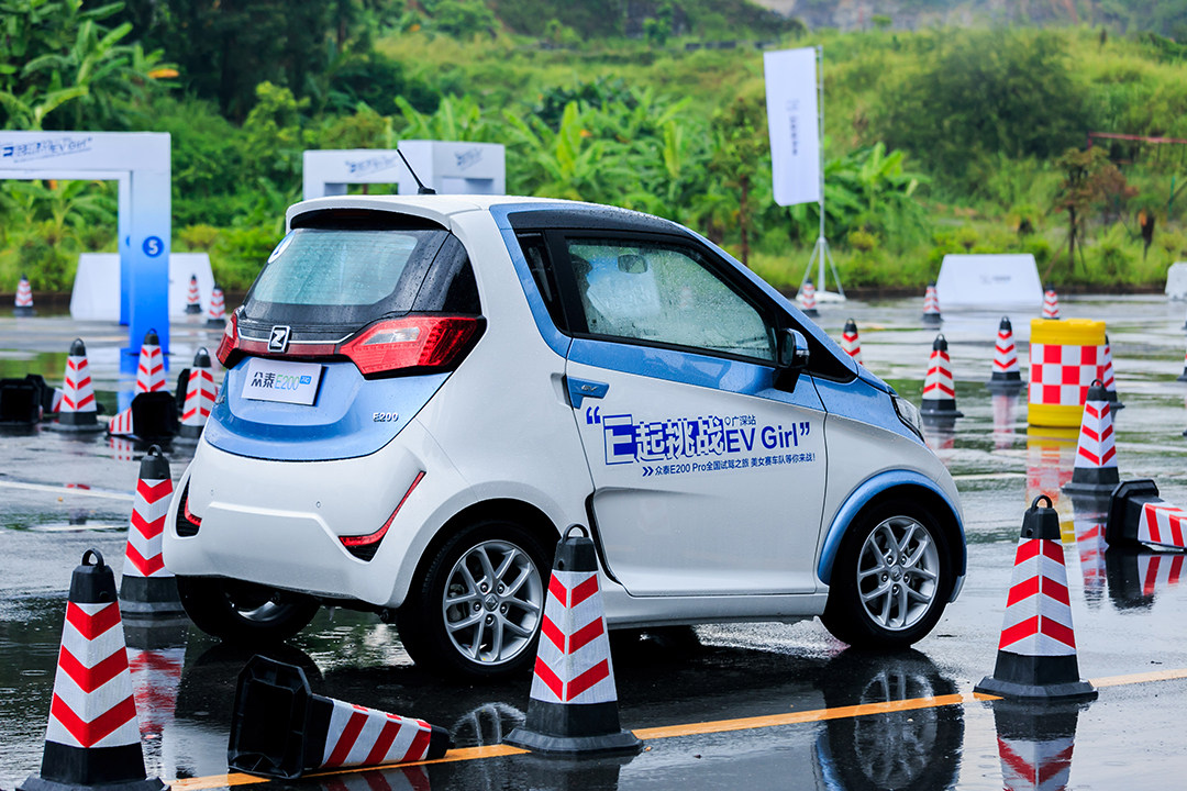 众泰E200 pro 自从7月上市以来,在A00级市场上的表现颇为抢眼。8月众泰新能源发起了“E起挑战EV Girl”的全国试驾活动, 分为京津冀、广深、河南、山东、江浙沪 5站。8月14日,广深站场地试驾会在东莞三原色水濂山试驾基地顺利举行,拉开了全国区域试驾的帷幕。本次试驾由众泰新能源纯电动美女赛车队作为挑战嘉宾,而挑战主咖则是被称为双座电跑小钢炮的众泰E200 pro。