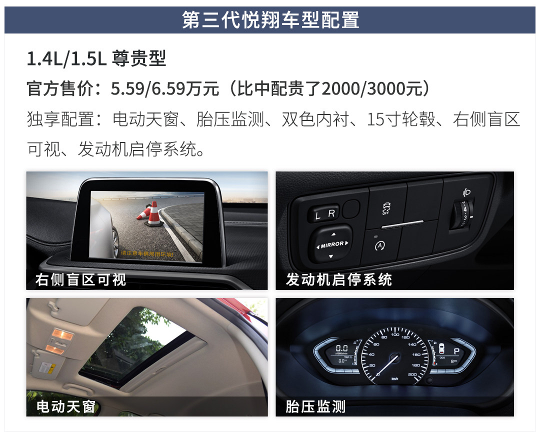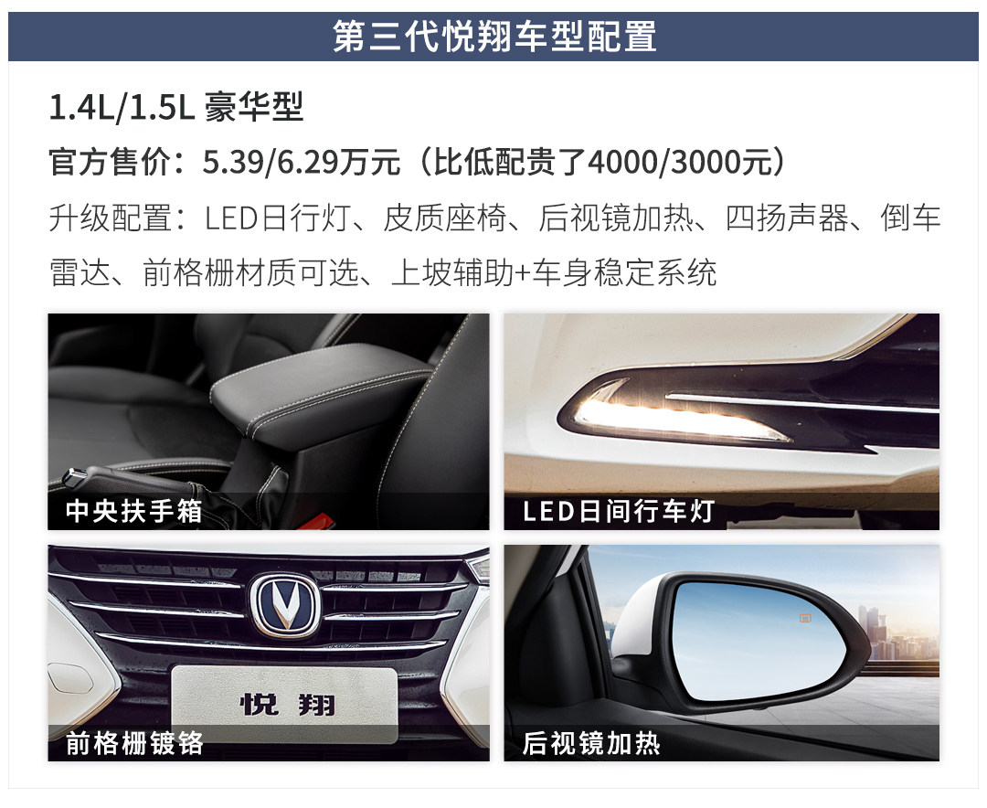 第三代悦翔主要分为(舒适型,豪华型,尊贵型)三个配置级别,1.4L/1.5L两款不同动力,5MT/5DCT两种变速箱,教授接下来和大家说明一下这三级的配置差异。