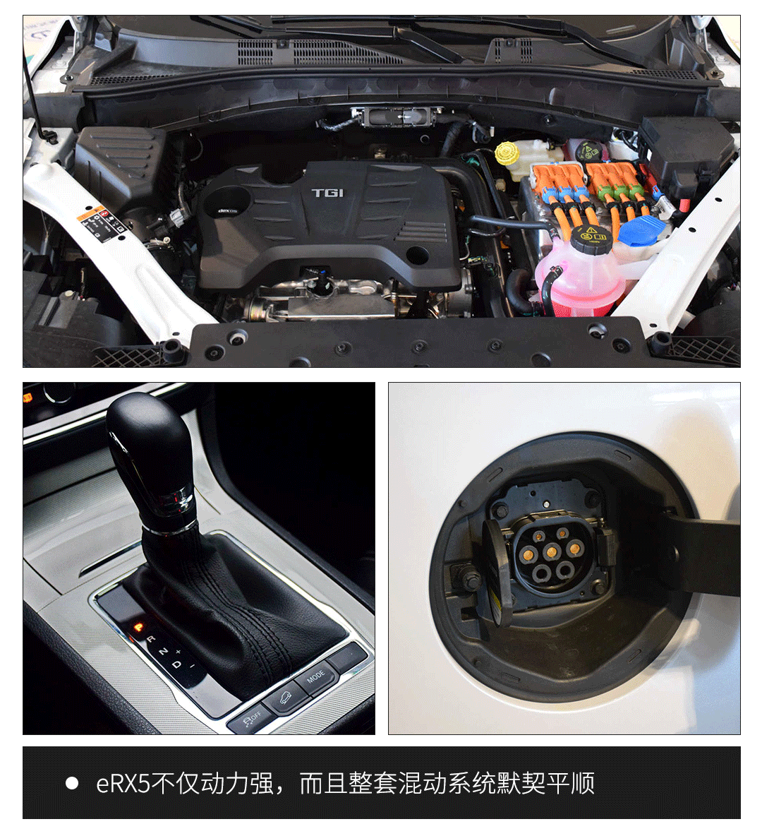 eRX5的三元锂电池享受8年或12万公里的超长质保。纯电模式续航60公里,慢充时间3小时,和汽油机配合下的综合最大续航约650公里,足够日常代步和长途出行,另外电量不足时导航系统会发送最近充电站地址到车辆的人机交互系统上,十分贴心!