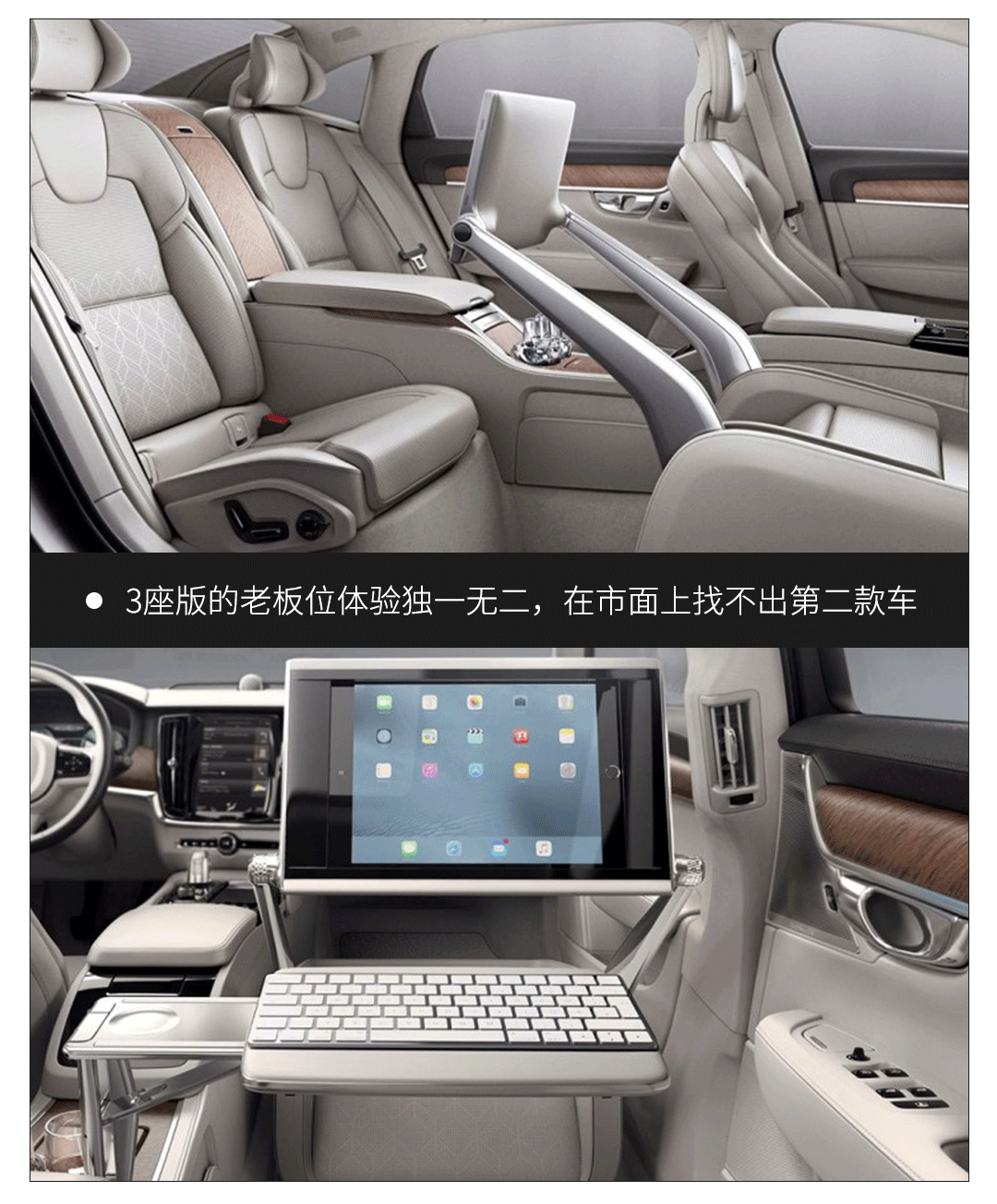 S90新能源说白了就是S90的T8版本,而且研发之初就是整个S90车系的顶级版本,因此T8拥有很多燃油版T4和T5无法获得的豪华配置,这主要体现在车厢内,T8版本独有4座和3座版车型,其中3座版的副驾驶座椅被拆除,换成了一个集成了脚蹬、鞋盒、12.9英寸iPad Pro平板电脑的工作台,简直就是无敌老板座,都不用和自家燃油版相比,就连奔驰宝马奥迪甚至是劳斯莱斯宾利的旗舰车型,都无法提供这样的顶级尊贵体验,而这一切,仅需108.8万,还免税。。
