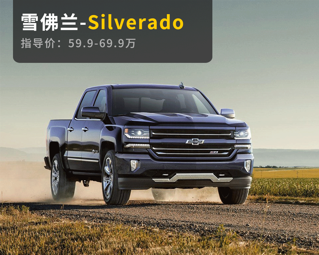 silverado在中国也只引进了大双排短货斗车型,动力上有5.3和6.2 V8自吸汽油机两种,大排量和V8的数字一听就十分美国!目前silverado中规和平行进口均有在售,基本是上都是高配。它的车头和分层式车灯的造型都十分方正,看着给人一种内燃机车火车头驾临的气势。
