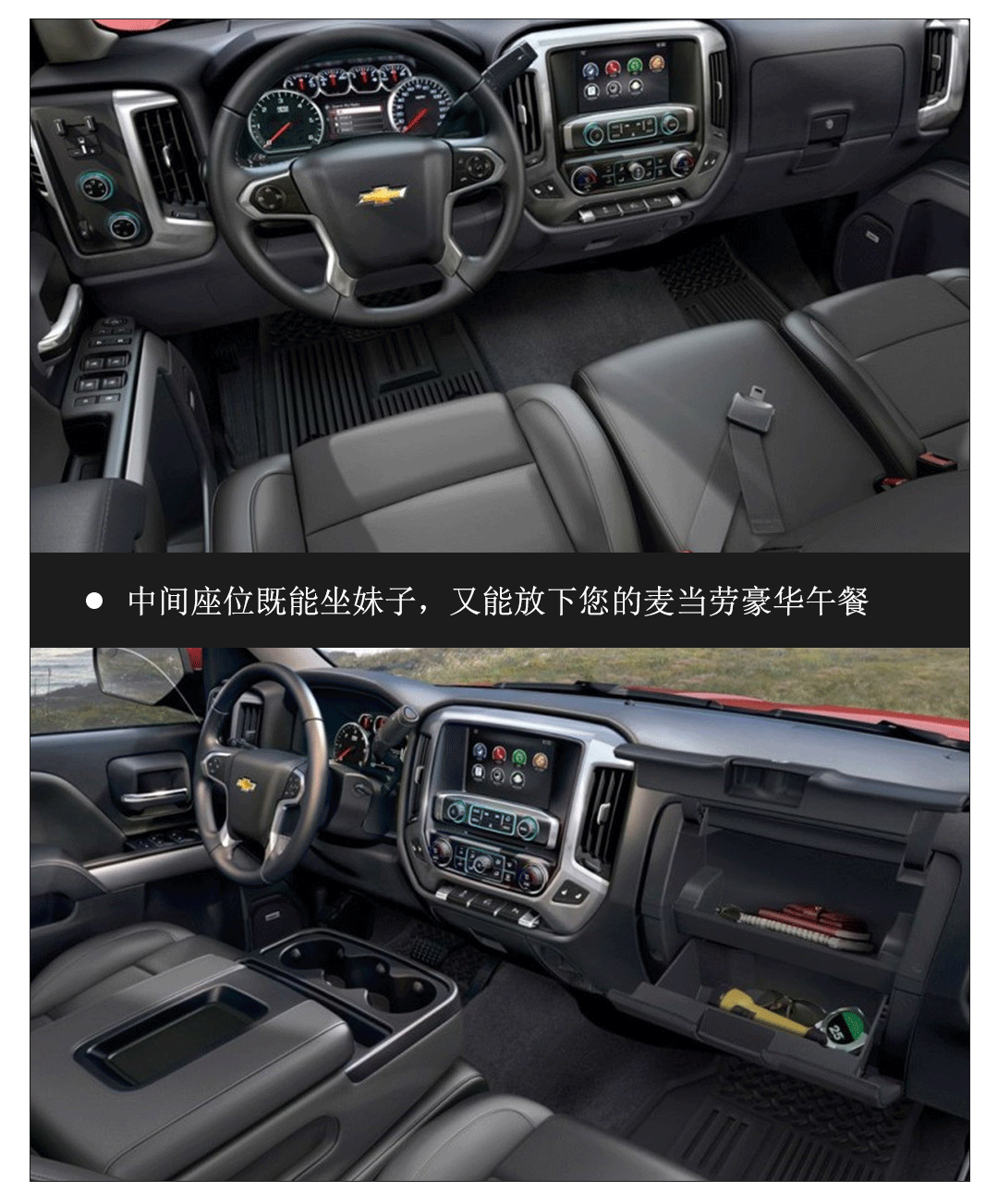 为何推荐:silverado的目标消费人群十分明确,那就是喜欢那种毫不妥协美国味的人,所以它并不会去讨好那些哪怕有一丁点不喜欢它的人。如果您能买到一辆前排带中央座椅的silverado,那就恭喜你了,赶紧约上自己喜欢的妹子,让它坐在中间的座位上,开车的时候右手该做什么,还有停车后可以直接在前排做什么,就不用教授教了吧!