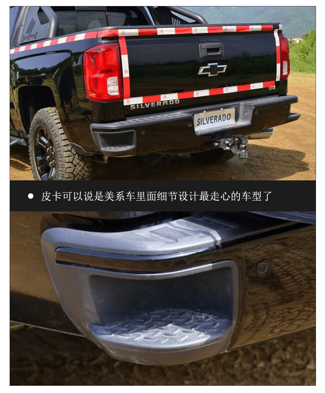 至于货斗方面,silverado在保险杠两边各有了一个内凹的脚蹬,货斗侧面上方各也有一个内凹的抠手,可以让人手抓抠手脚踩脚蹬借力爬上货斗,虽然没有F-150的踏板和扶手好用,但silverado货斗承载力在1500磅级别皮卡中是最强的,达到约800kg,而且使用传统钢制车身,货斗强度更大,在被重物剐蹭时更不容易受损,受损后修复成本也更低。