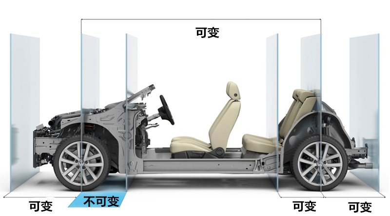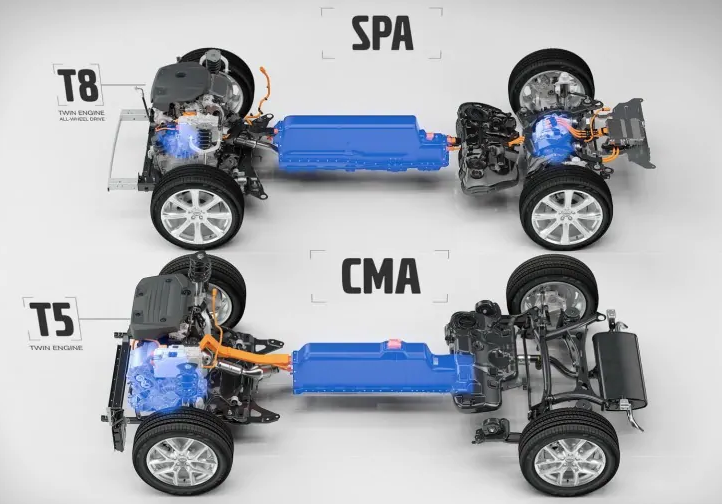 模块化平台就是将成熟的技术和设计结合起来,再根据市场做一个细分,比如横置引擎前驱车成本低空间大适合中小型车,那么就开发一个横置引擎的平台,这个平台的前桥结构还有前桥与驾驶舱的距离是固定的,而车身长度、轴距和外观造型可以在一定范围内自由调整,但是超出这个平台的尺寸限定就不行了,比如沃尔沃SPA平台尺寸最小的车型就是XC60,要推出XC40这样的紧凑型车时,不得不再开发一个CMA平台。因此大厂一般都会根据尺寸和性能等级划分,开发3至4个模块化平台。