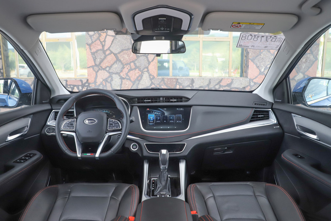 如果要用一个词来形容斯威G01的这套内饰,那就是“简洁”,但还要再附带一个词的话,那就是“运动”,整个中控区没什么按键,整体看上去很自然,最能体现运动的当然就是无处不在的红色缝线,还有就是平底的方向盘底部那意大利国旗元素。除此之外这样内饰在功能配置上也是主流的设定,像什么全液晶仪表,中控大屏这些是绝对少不了的。