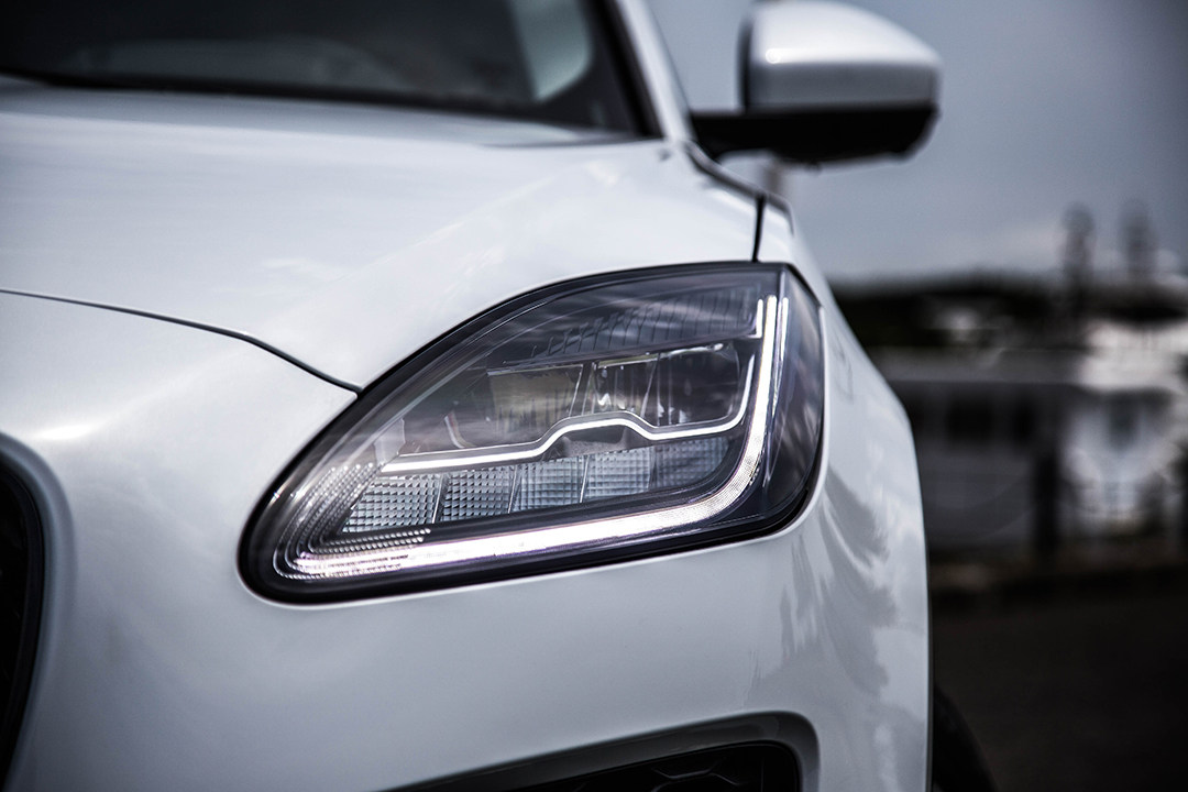 比如说E-PACE的尾灯就和自家的F-TYPE跑车十分相似,大面积的蜂窝状进气格栅、车尾的双排气管、20寸的大轮毂、源自F-TYPE的直立式大灯等等设计都很有跑车范儿。