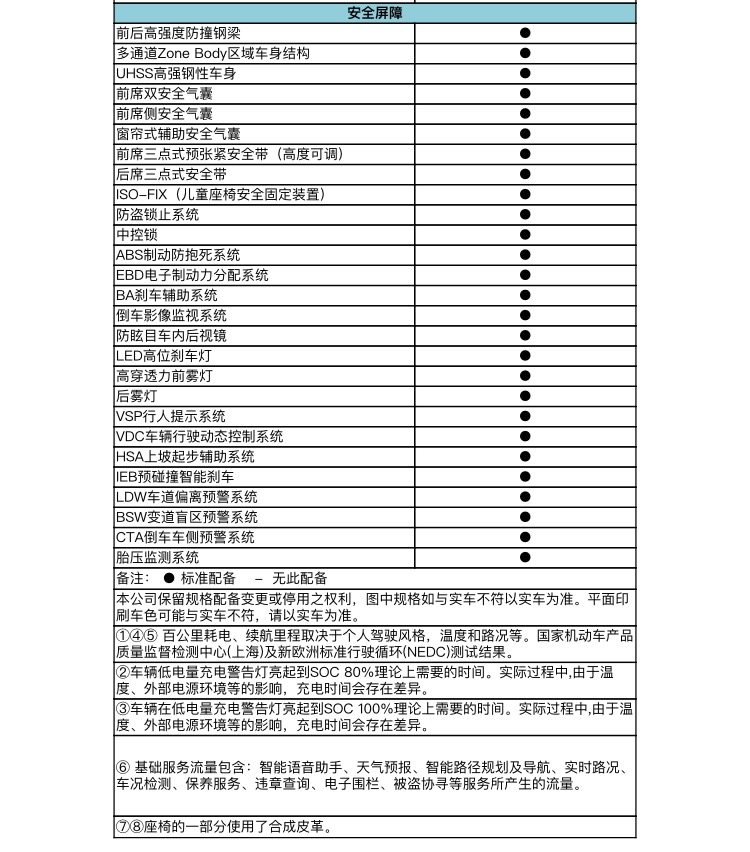 附:轩逸·纯电SYLPHY Zero Emission参数配置表