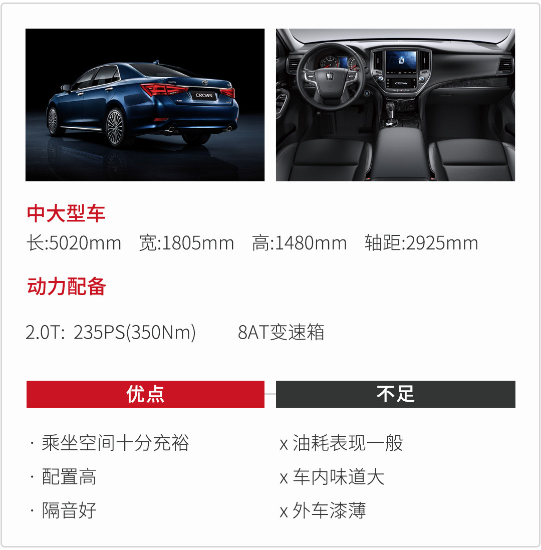 所以最后的结论,气场方面,现在的皇冠已经不复当年了,但还是有一个很独特的车标,一个很独特的情怀。其次最重要的还是舒适性方面和品质可靠性方面,是绝对物超所值的。