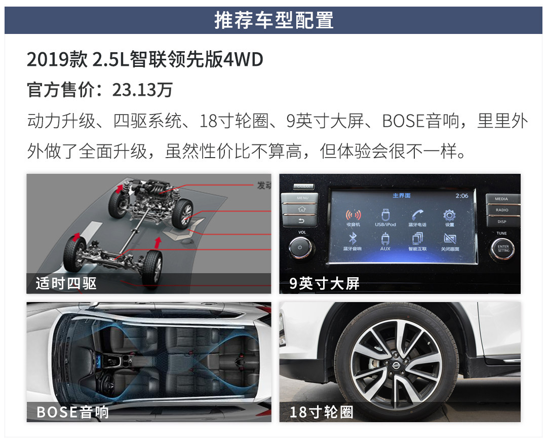 而作为2.5L的车型,方方面面都得到不少的提升,相对2.0L车型是贵了不少的,但总得来说也是物有所值吧。其中2.5L的智联领先版是最推荐的,本次改款升级的车联网和BOSE音响都享受到了。同样如果有7坐需求的也是要加8000元,不过这个7坐版是没有BOSE音响的,但取而代之的是一些更实用的配置,比如全景摄像头,并线辅助等。