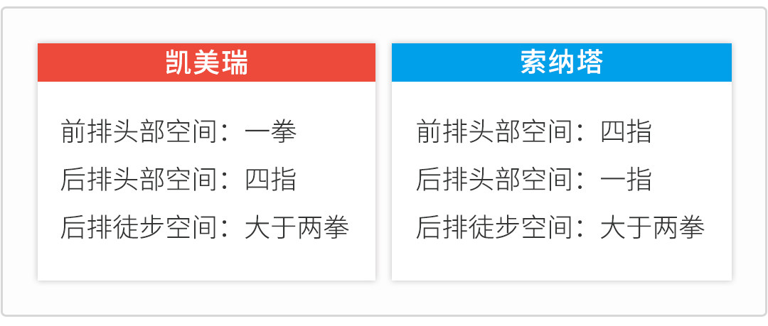 凯美瑞基于TNGA架构下,坐姿更低的优势,其前后排的头部空间表现都更出色一点。而索纳塔的后排头部空间也的确比较逊色,没有同级应有的水平。
