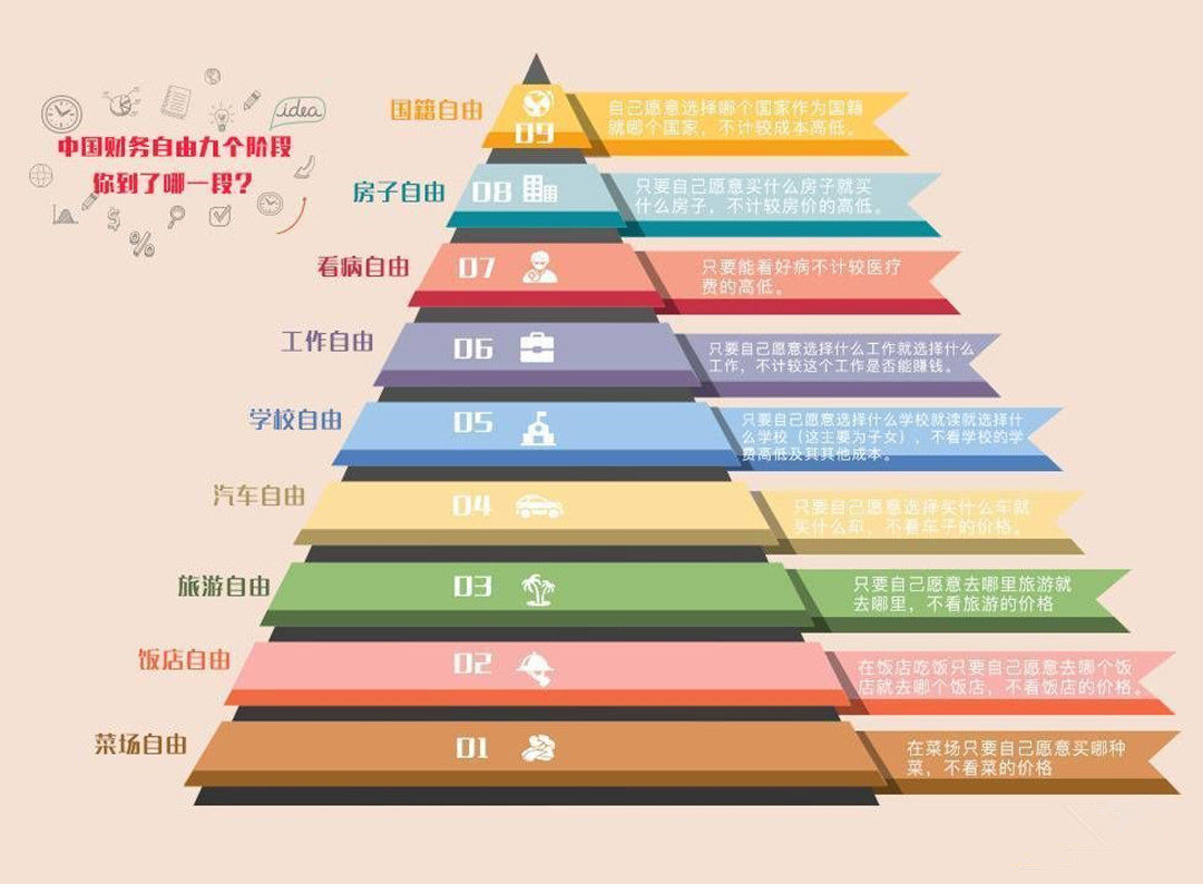 财务自由意指人无需为了日常生活开支而去埋头工作,被动收入超过日常的开支。简而言之就是“躺着就能赚钱”的状态。根据胡润富豪榜于2017年发布的财务自由衡量标准指出,身处北上广深等一线城市实现财务自由的门槛高达2.9亿,而杭州、南京等二线城市则需要1.7亿。