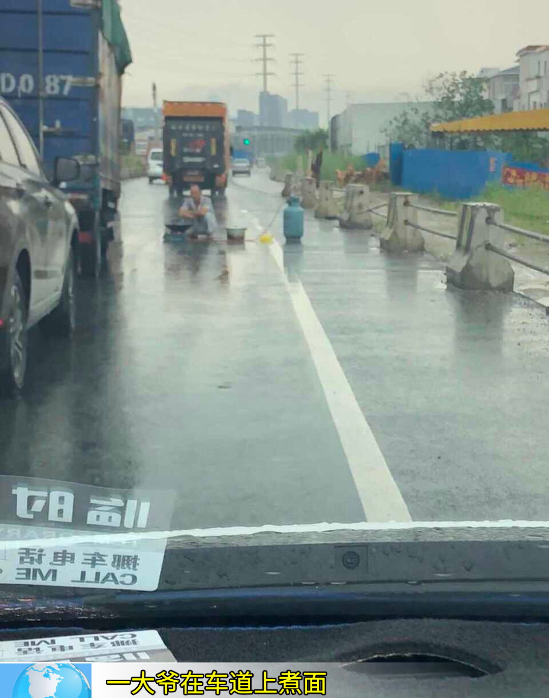#最奇葩堵车原因 有人在路上煮面# 你没看错我也没写错,某条路上有个大爷在车道上煮面,导致交通大堵塞。大爷,在车道上煮面特别香吗?