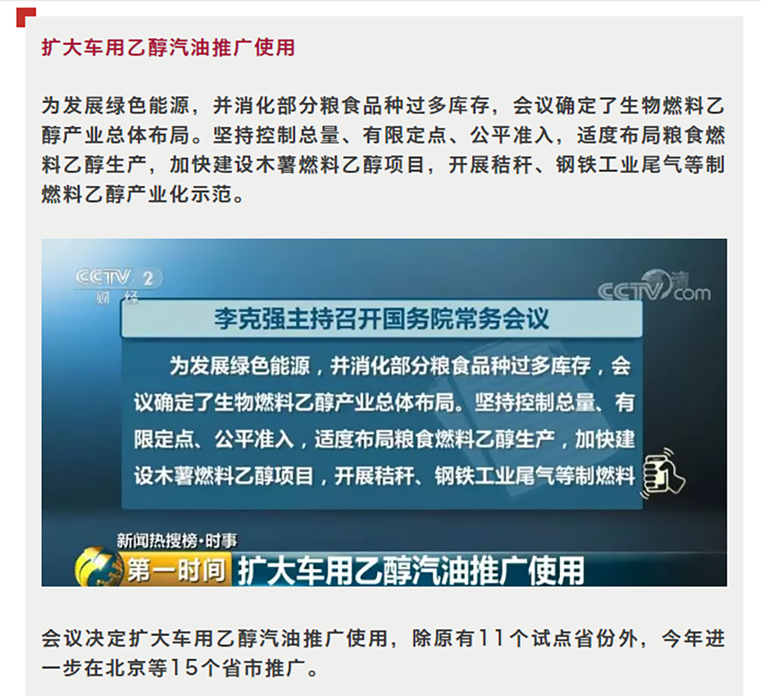 近日,国家总理李克强主持召开了国务院常务会议,为发展绿色能源并消化部分粮食品种过多库存,会议确定了生物燃料乙醇产业总体布局,决定扩大车用乙醇汽油推广使用,除原有11个试点省份外,今年将进一步在北京等15个省市推广。大家怎么看。