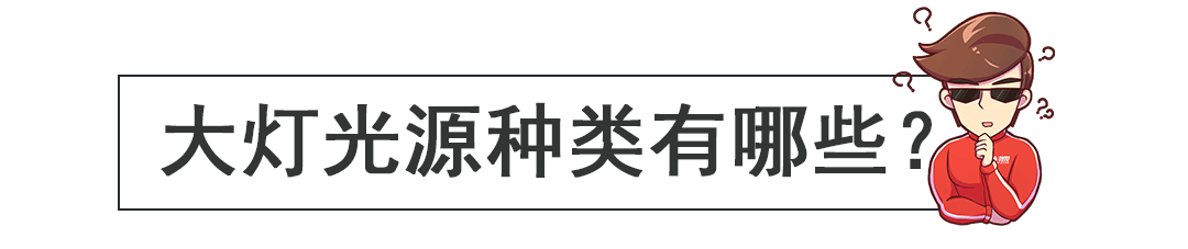 卤素光源:卤素大灯是出现最早、使用最普遍的光源类型,是钨丝白炽灯的一个变种,基本发光原理相同,不同在于卤素灯的玻璃外壳中充有一些卤族元素气体来提高使用寿命。其灯光颜色偏淡黄色,上世纪90年代以前的雾灯甚至还有深黄色或橙色的卤素灯。