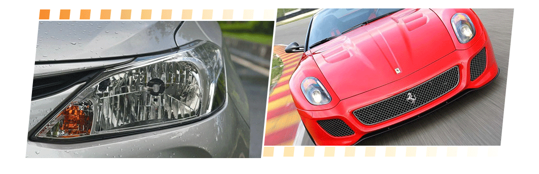 远近光灯一体式:这种布局多应用于低端车型,主要为了降低成本,使用卤素光源,且没有透镜,只有反射灯罩,通过改变亮度和大灯照射高度来切换远近光灯。不过也有例外,某些超跑为了造型需要也使用远近光一体布局,例如法拉利599,但使用氙气光源,且带有透镜。