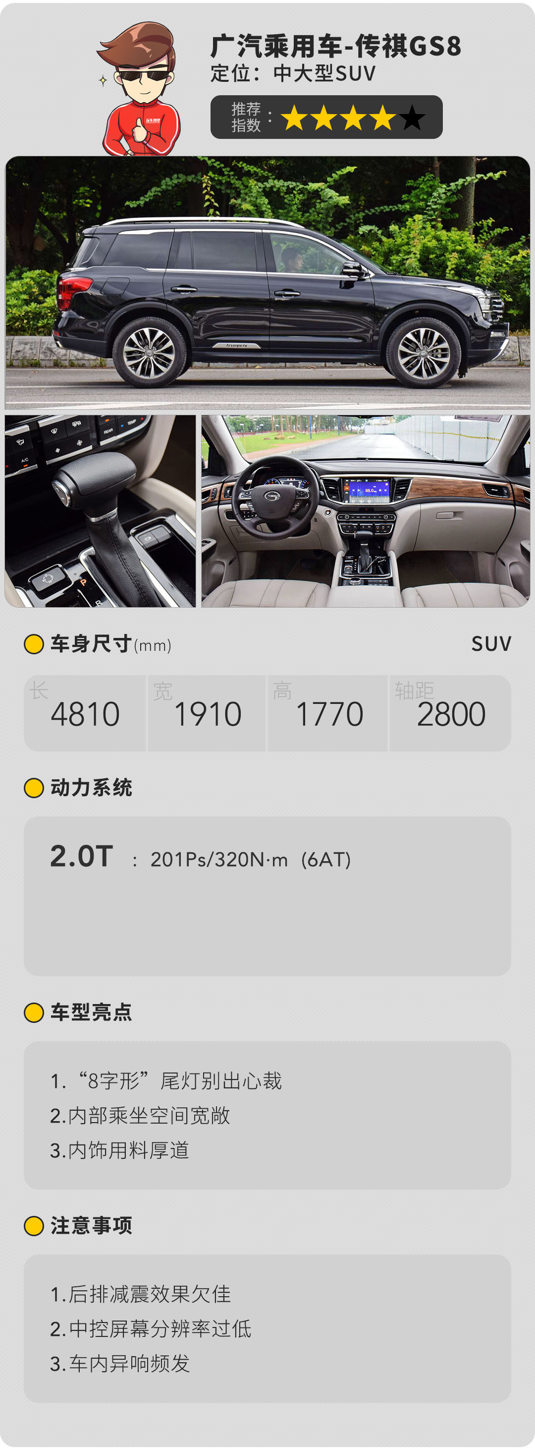 与宝骏、长安不同,从品牌成立伊始,传祺就是以品质化作为出发点,旗下的GS与GA系列车型均以优异的行驶质感著称,随后GS4和GS8的热销印证了对于高品质的乘用车需求并不弱,其中GS8的出现直接冲击20万级别合资品牌牢不可破的核心阵营,并一举突破了自主品牌20万级别的价格天花板。