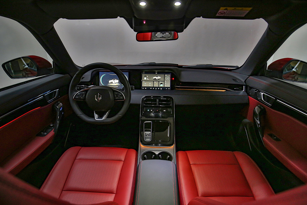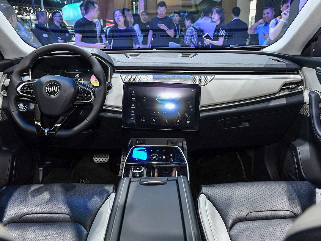 远不止此,穹顶式天幕窗、100%光谱变色氛围灯为舱内环境增色不少,一体式运动座椅以及向奔驰E级致敬的一体式仪表盘和中控屏强化了内饰布局整体感。