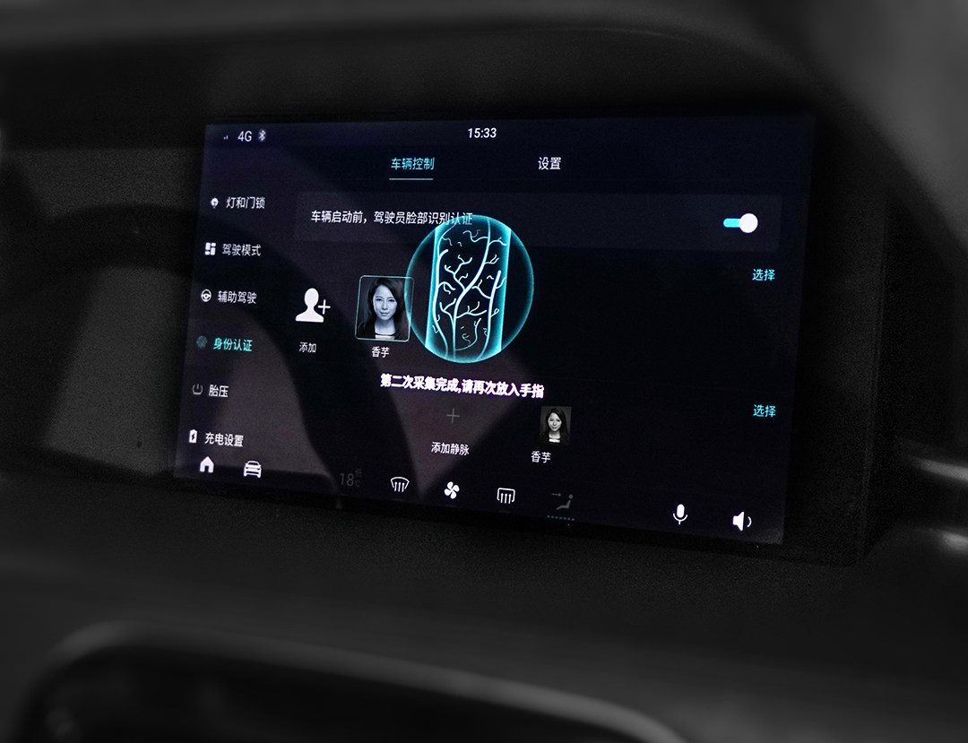 全新智能内饰发布从质感到智感的设计理念进化,体现在指静脉进入与人脸识别技术构筑起的Leap In生物钥匙系统,驾驶员无需物理钥匙即能实现从进入车辆到启动的全程操作,You are the key。