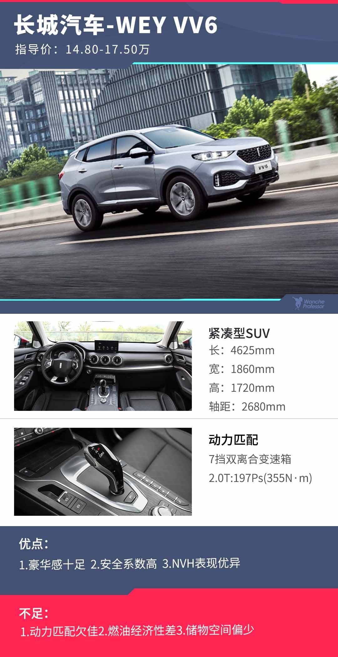 WEY品牌便是顺应时代的产物,在VV5和VV7身上初尝胜利喜悦后,旋即在8月26日上市旗下的第四款车型——WEY VV6,共5款车型可选,售价区间为14.80-17.50万 ,处于5和7之间,新车最大亮点在于标配20项智能驾驶功能,安全性能堪比沃尔沃。事不宜迟马上来扒一扒这款“安全狂人”。